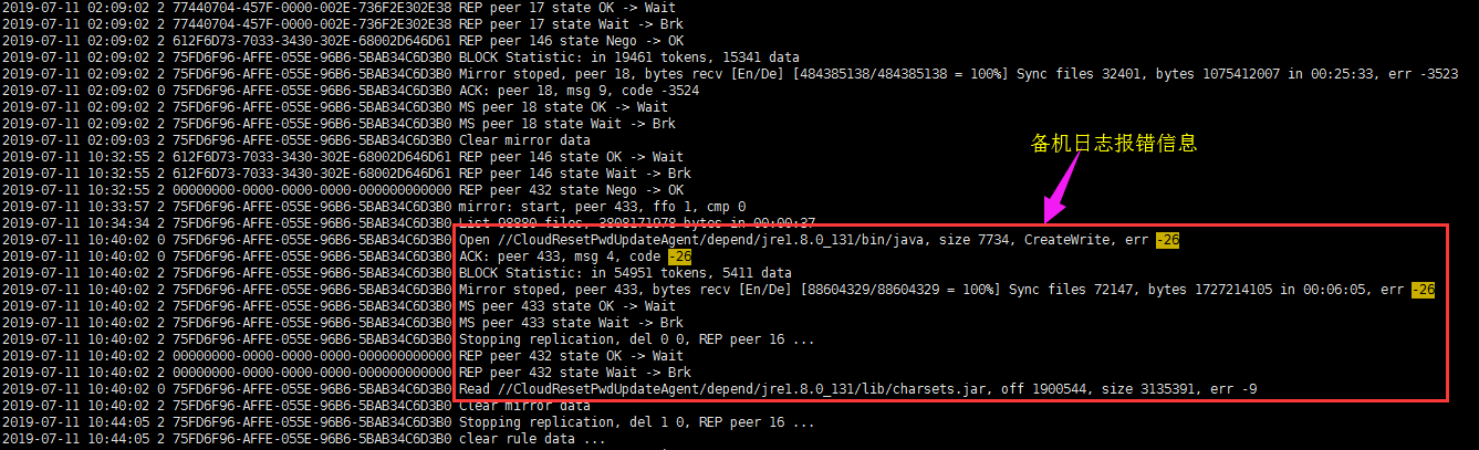 按照默认配置提交迁移规则后,运行一段时间规则停止,备端日志中出现-26错误。