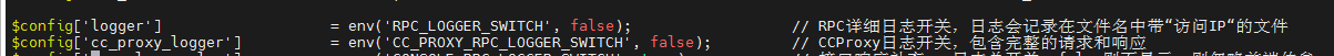 $config['logger'] = env('RPC_LOGGER_SWITCH', true); // RPC详细日志开关,日志会记录在文件名中带“访问IP“的文件
